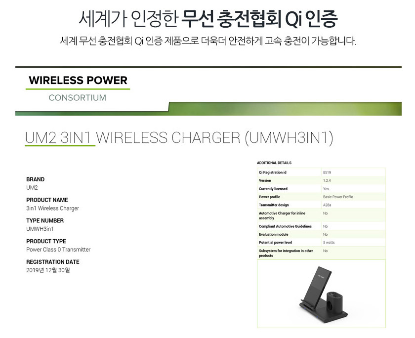 2020³â UM2 ¾ÖÇÃ ÃæÀüµ¶ ½ÅÁ¦Ç° UMWH3in1